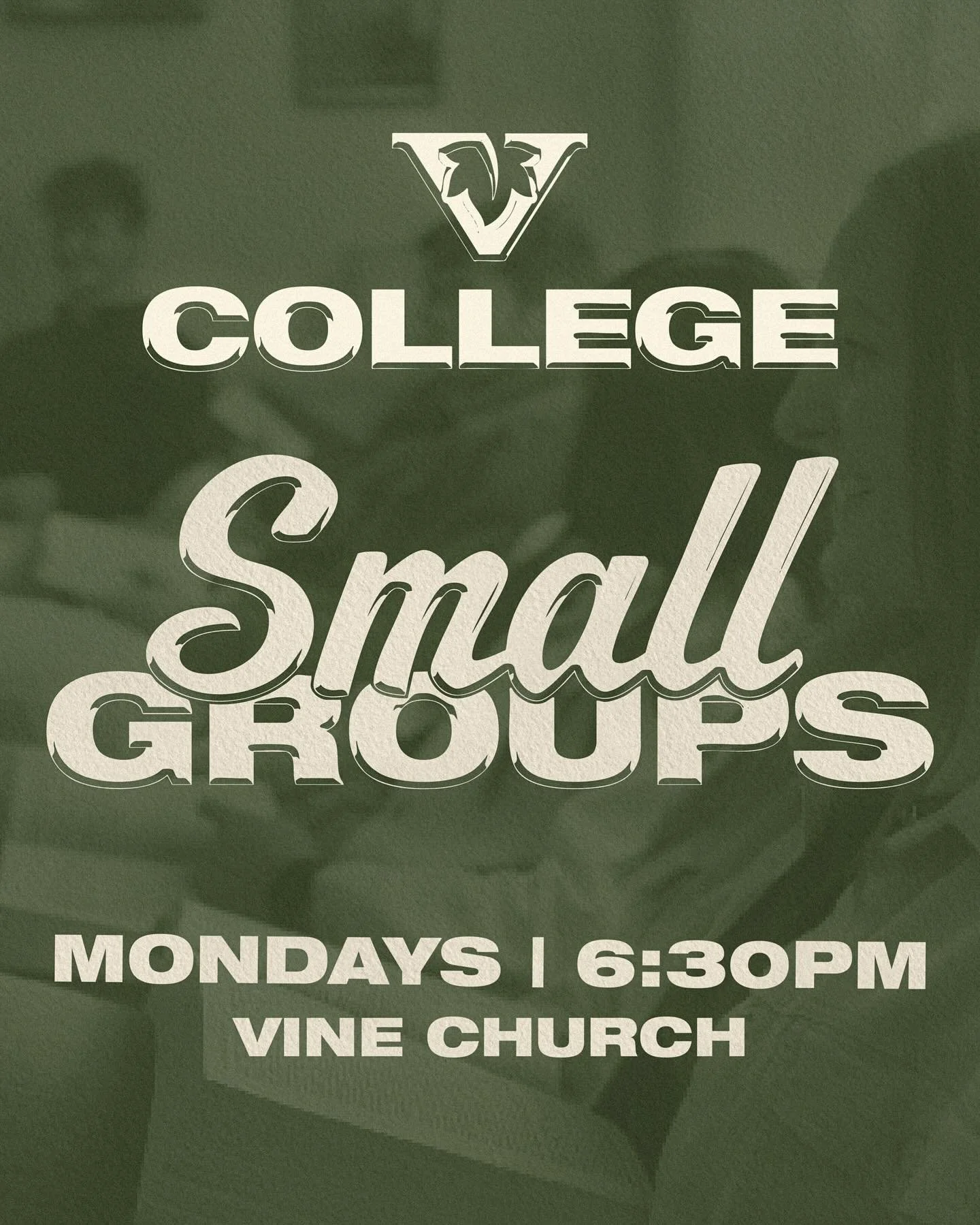 We’d also encourage you to check out one of our small groups! They are a great place to form friendships and get more connected with other college students here at Vine. Groups meet weekly to form real relationships and discuss relevant Bible topics intended to help you grow and live out your faith.