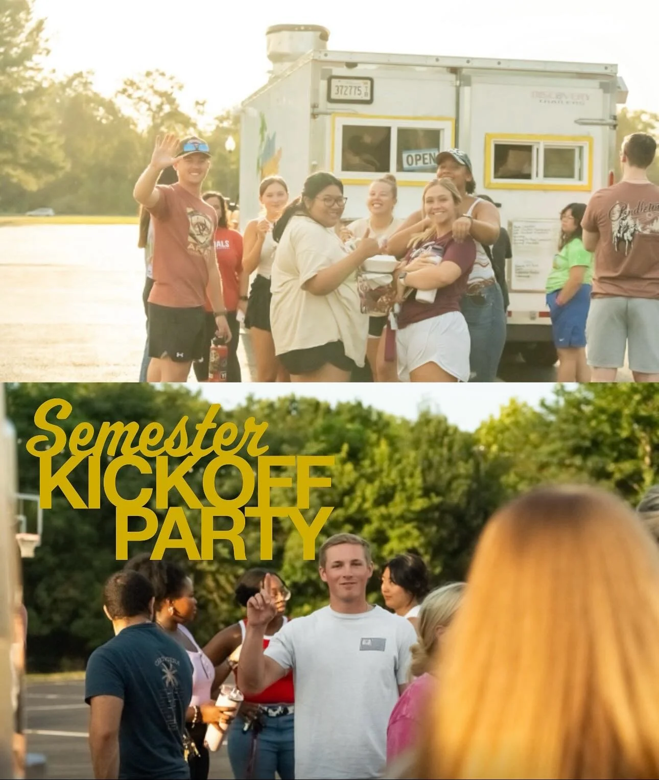 We are kicking off this semester with a bang! This will be a great chance to get to know other college students! There will be food trucks and yard games! Invite your friends to come hangout! We will be set up behind/around the North Building.
