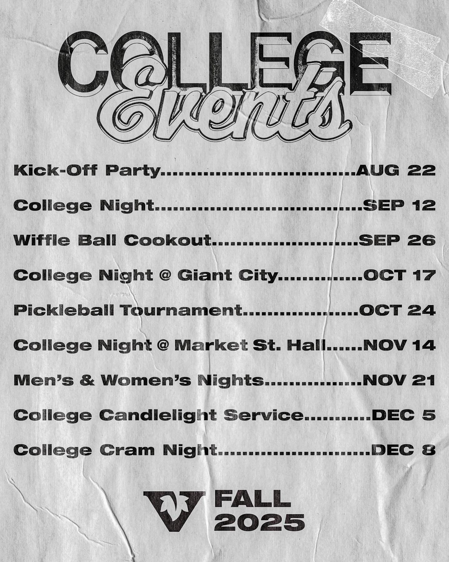 Listed down below you’ll find the larger student events that we’ve got planned. Follow us on Instagram @vinechurchcollege for updates on events and to see other things our students are up to.